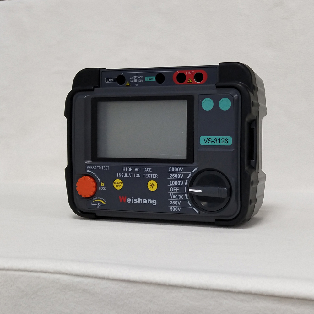 Weshine® VS-3126 werkt op batterijenAnaloge isolatietestermet digitaal en analoog boogdisplay, ontworpen voor het testen van de isolatieweerstand bij hoogspanning bij het onderhoud en de service van kabels, roterende machines, transformatoren, schakelapparatuur en industriële toepassingen.